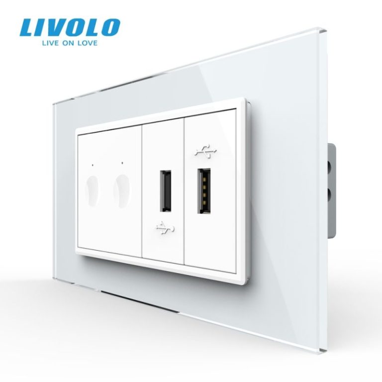 Intrerupator tactil dublu + priza dubla USB, 4M, cu rama sticla