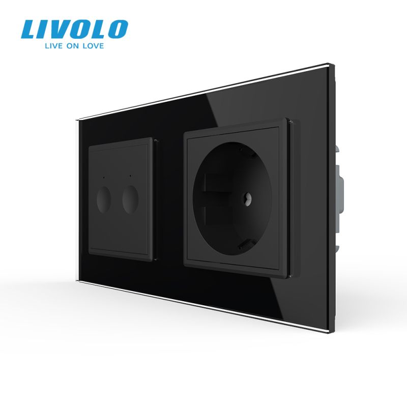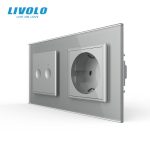 Intrerupator tactil dublu + priza Schuko, generatia noua, cu rama sticla