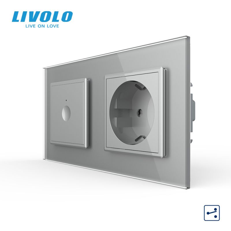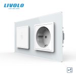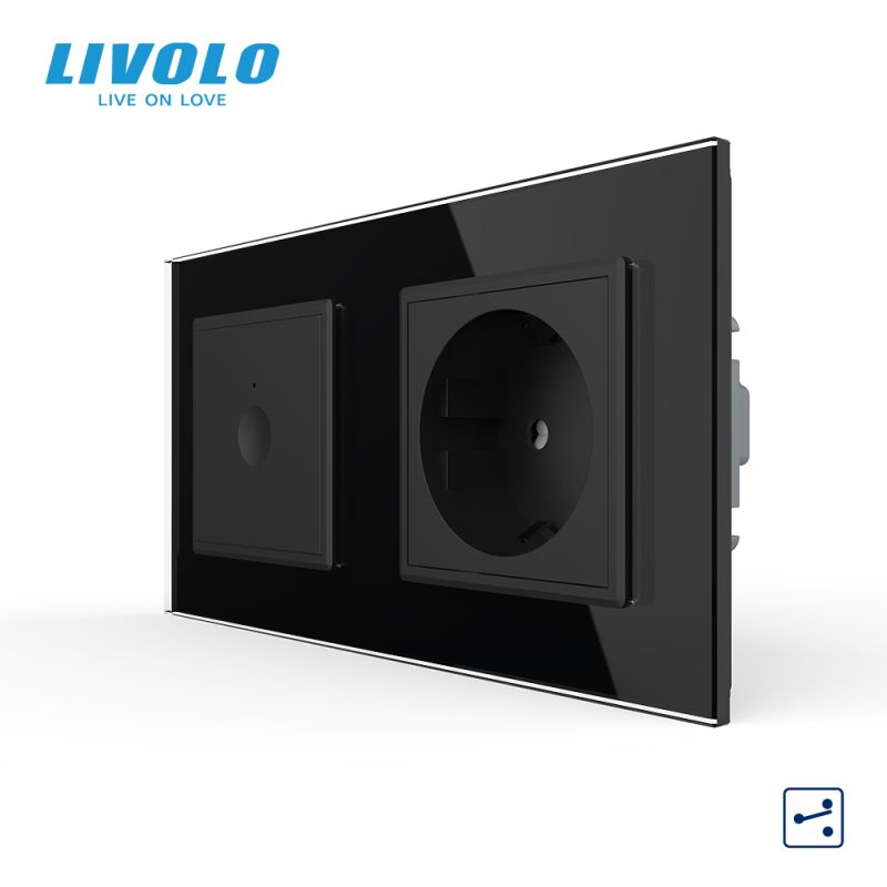 Intrerupator tactil dublu + priza Schuko, generatia noua, cu rama sticla