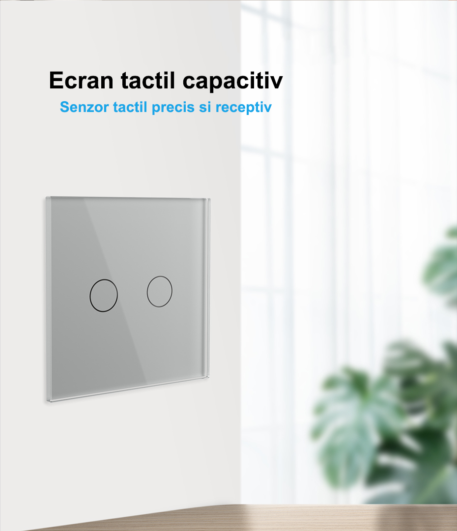 Intrerupator dublu tactil, control draperie, Protocol EC, cu panou sticla, Generatia Noua Prețul inițial a fost: 233.00lei.Prețul curent este: 209.70lei. TVA inclus