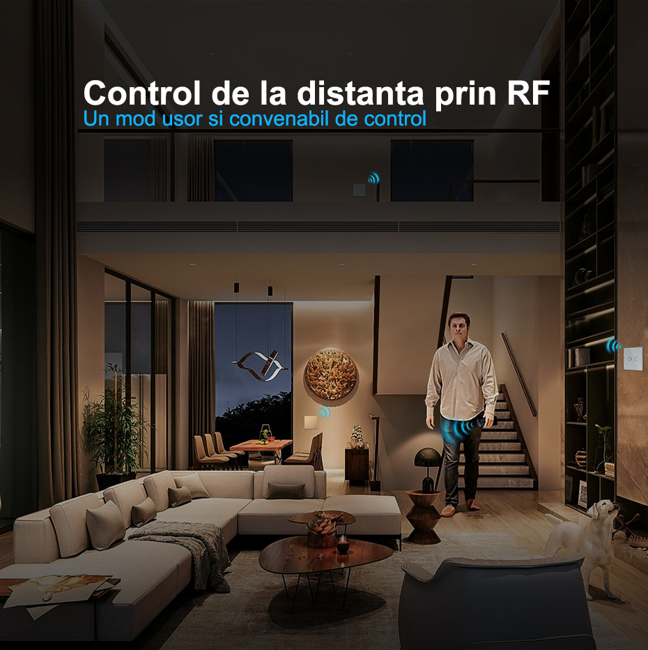 Modul intrerupator dublu tactil, wireless – control telecomanda RF, control draperie