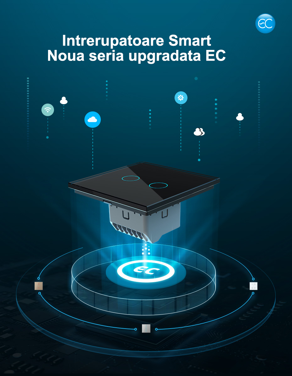 Modul intrerupator inteligent EC simplu tactil, cap scara, Generatie Noua Prețul inițial a fost: 160.00lei.Prețul curent este: 144.00lei. TVA inclus