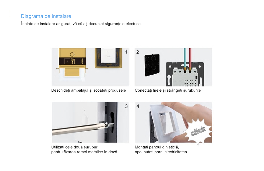Intrerupator simplu tactil, 1M, cu rama sticla Prețul inițial a fost: 146.00lei.Prețul curent este: 131.40lei. TVA inclus