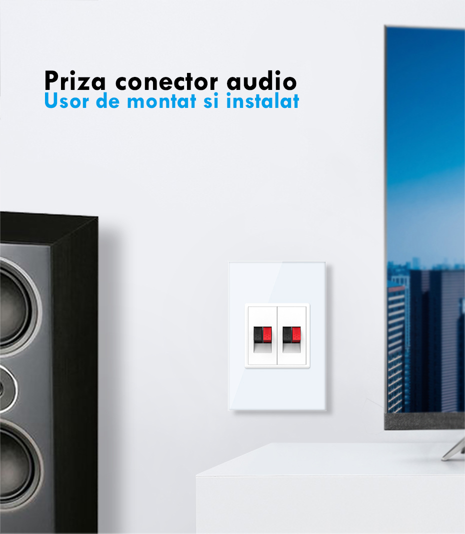 Priza dubla cabluri audio, 2x1M, cu rama sticla Prețul inițial a fost: 78.30lei.Prețul curent este: 70.47lei. TVA inclus