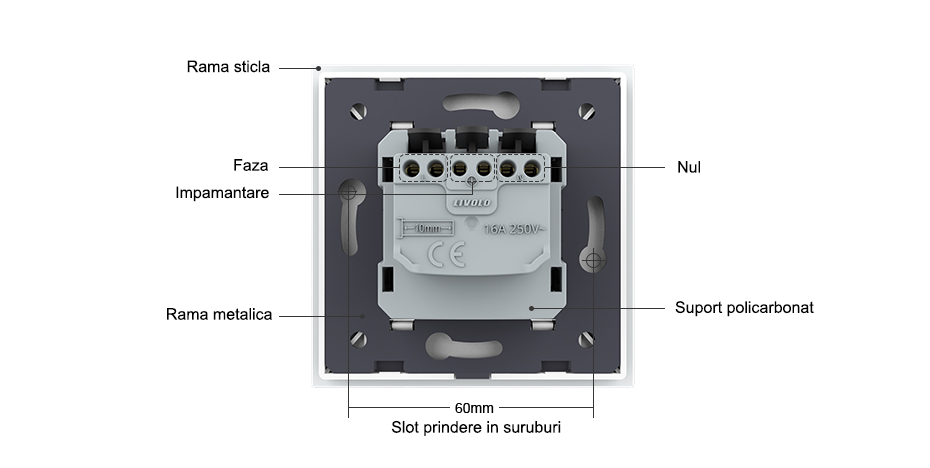 Priză Schuko simplă, borne fara surub - quick connect, cu rama sticla Prețul inițial a fost: 55.00lei.Prețul curent este: 49.50lei. TVA inclus