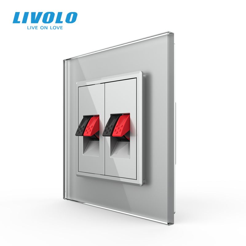 Priza dubla cabluri audio, 2x1M, cu rama sticla